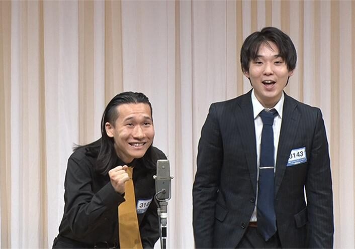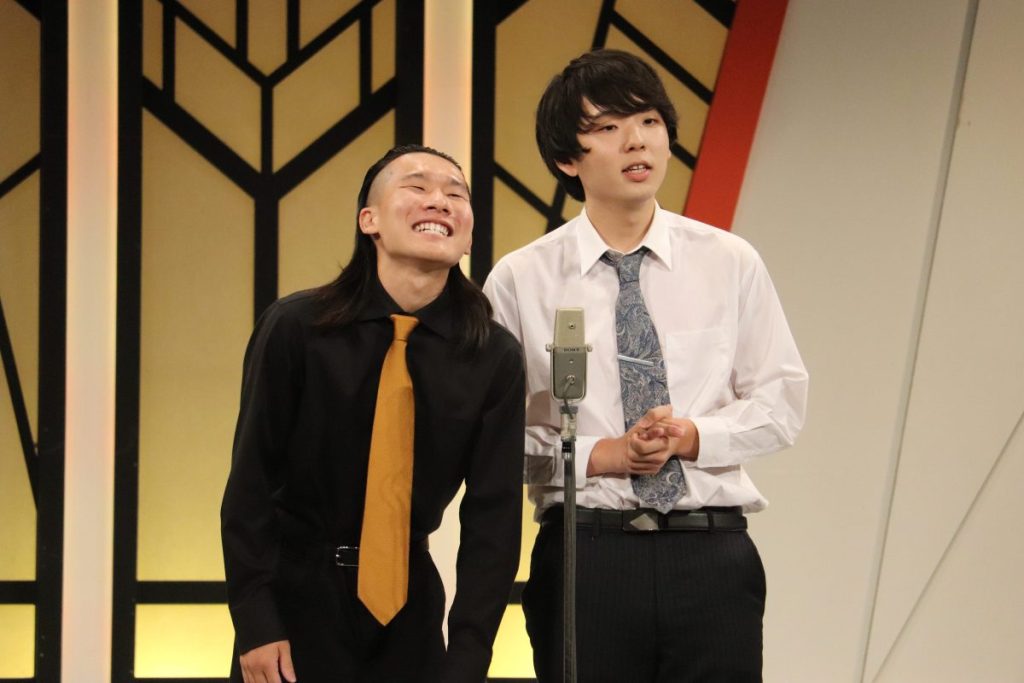 お二人の芸風は、向かって右の池田涼馬さんが一人で話し、山口バックさんが、