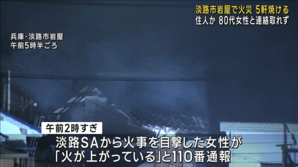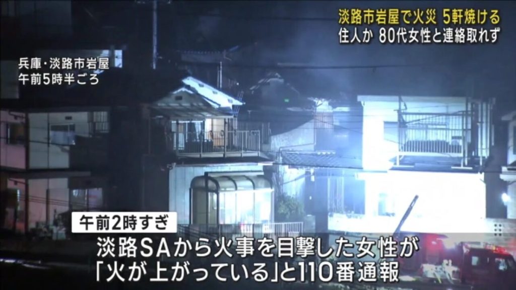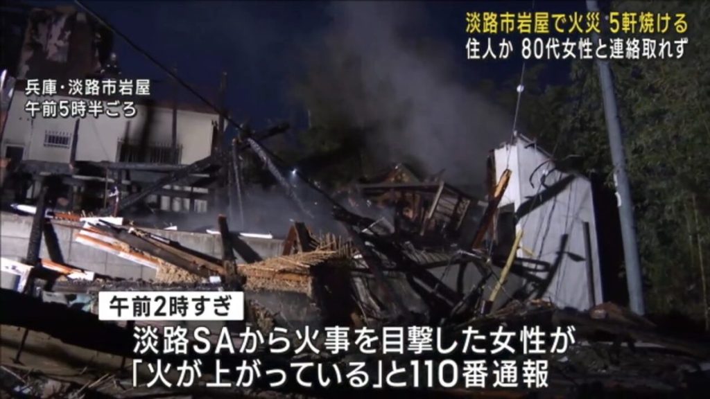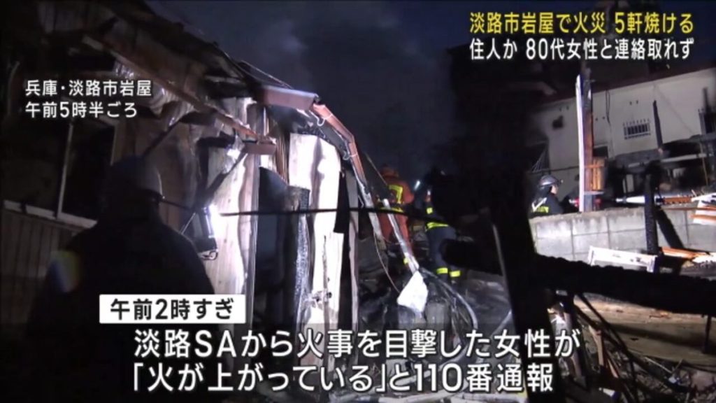 18日未明、兵庫県淡路市で住宅5軒がほぼ全焼する火事があり、80代の女性と連絡がとれていないということです。